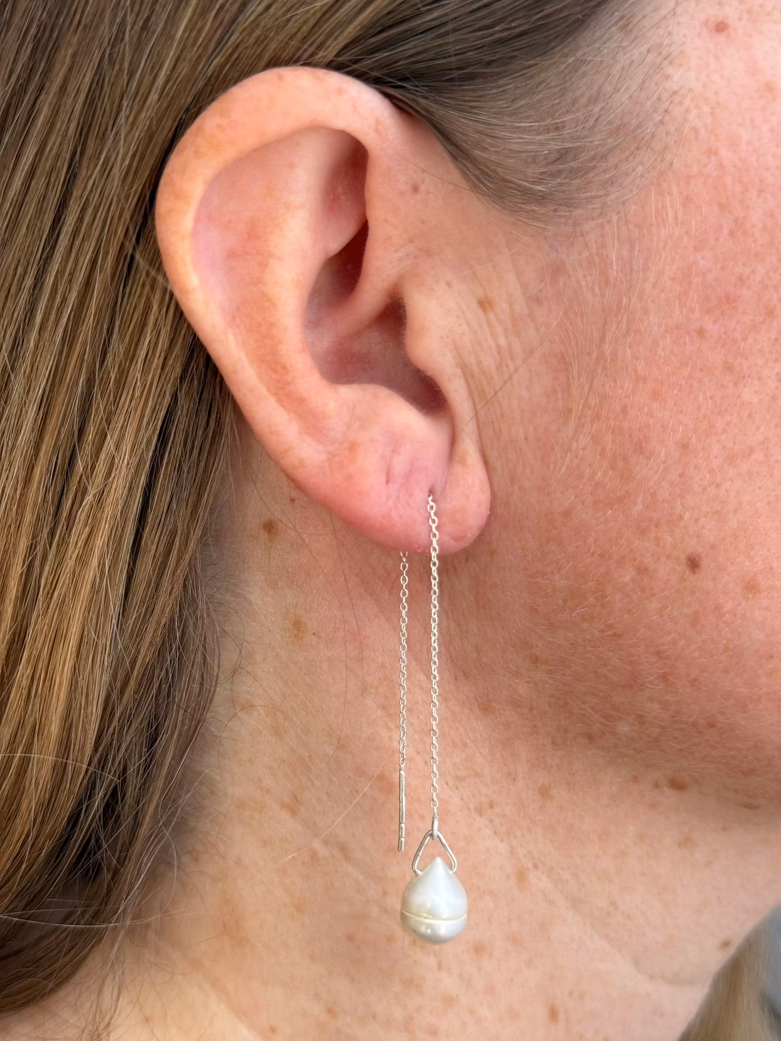 Alla Kedjeörhängen består av 925 silver. Även hänget är i äkta silver. Du kan dra kedjan genom ditt hål och därmed själv bestämma hur långt ner du vill att pärlan ska hänga. Du får med en silikon plopp som du drar längs kedjan dit du önskar. Örhänget säljs styckvis så tänk på att lägga två stycken i varukorgen om du önskar ett par.