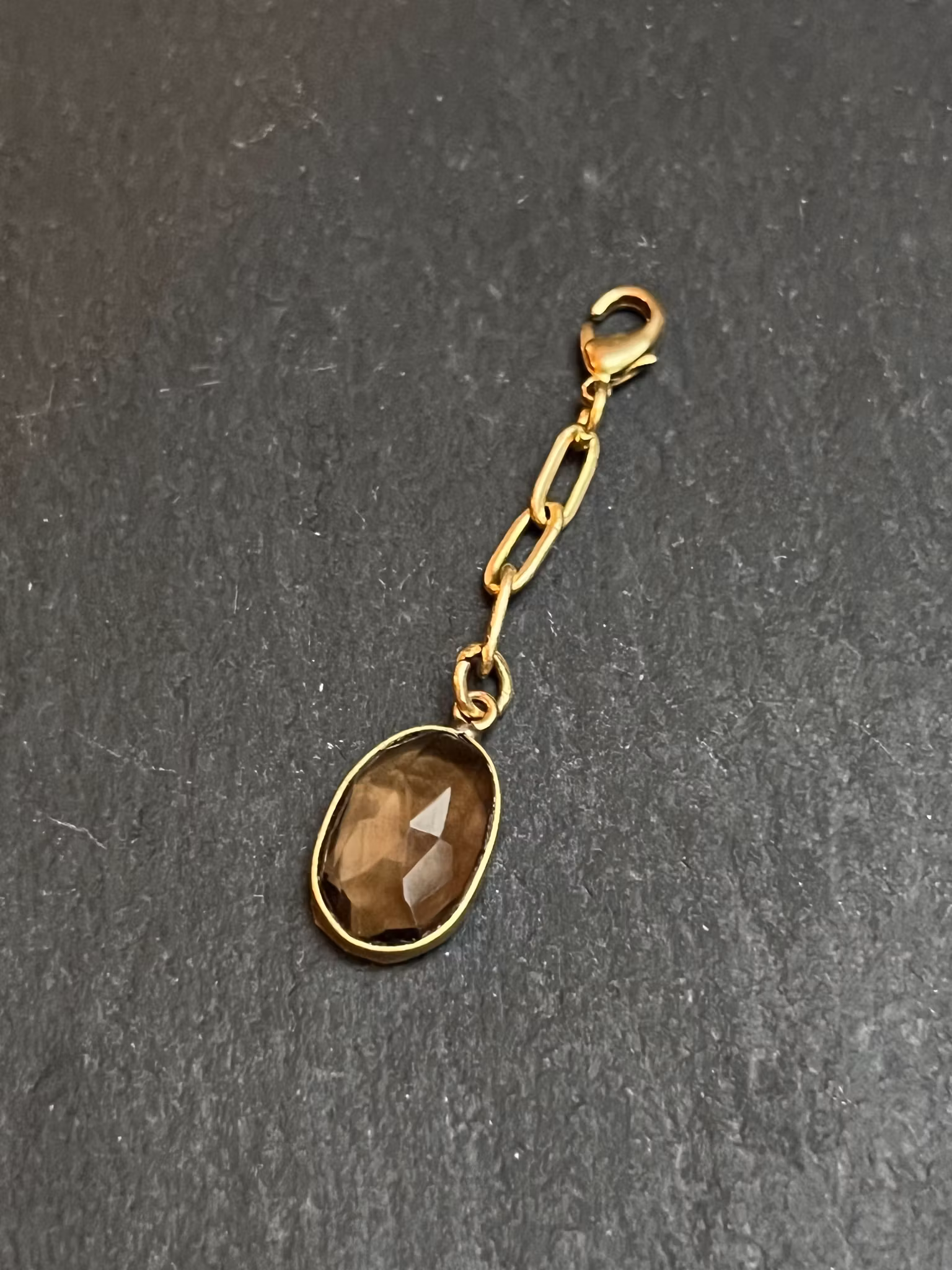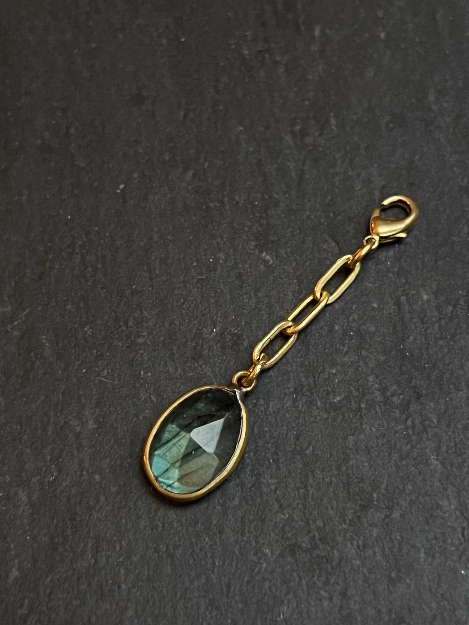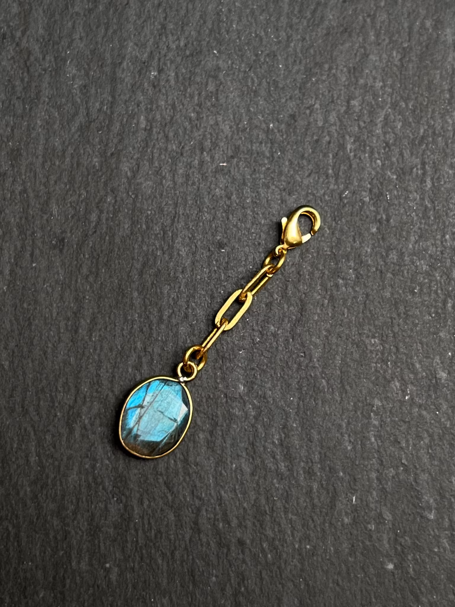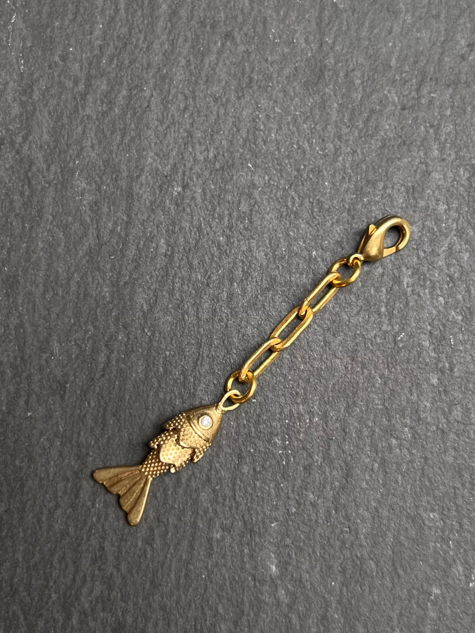Dessa hängen är till för att fästa i själva kedjan och blir ett fint komplement till de som är fästa i ringen. Denna modell sitter på en kort kedja med ett litet karbinlås så att du själv enkelt kan klicka på och av de från halsbandet. De kan bäras på egen hand eller i din unika kombination. De är väldigt fina att kombinera med de som endast har karbinlås.