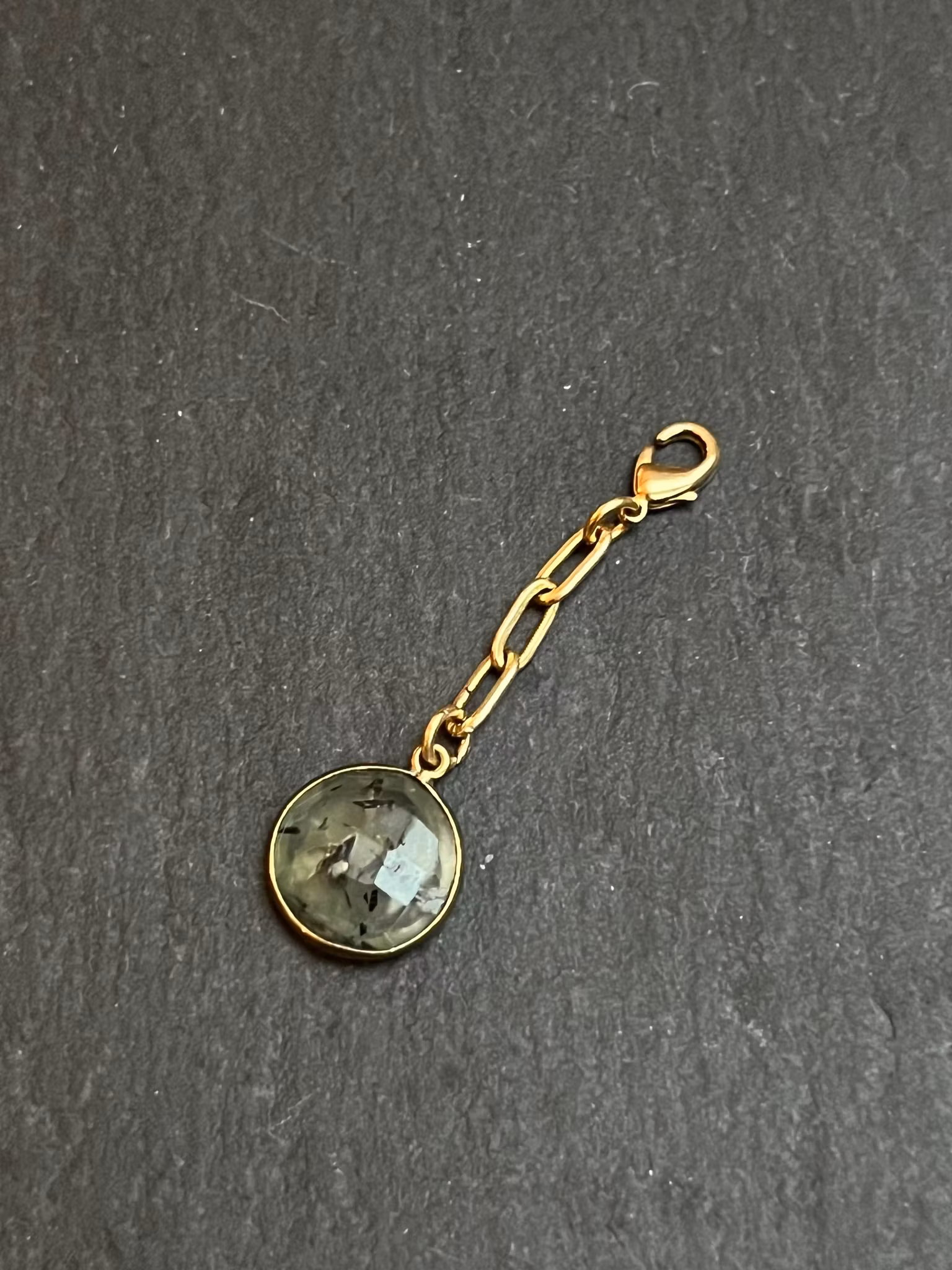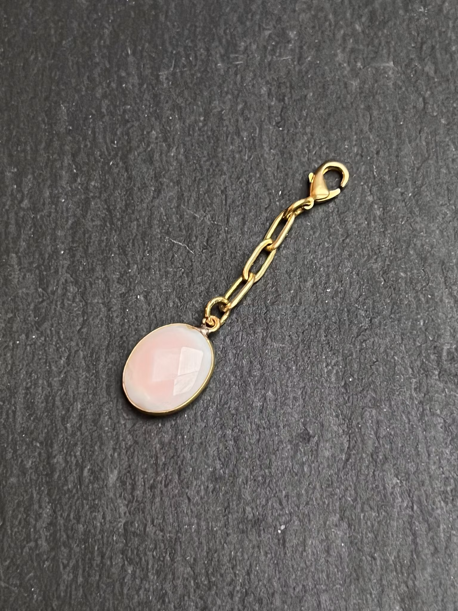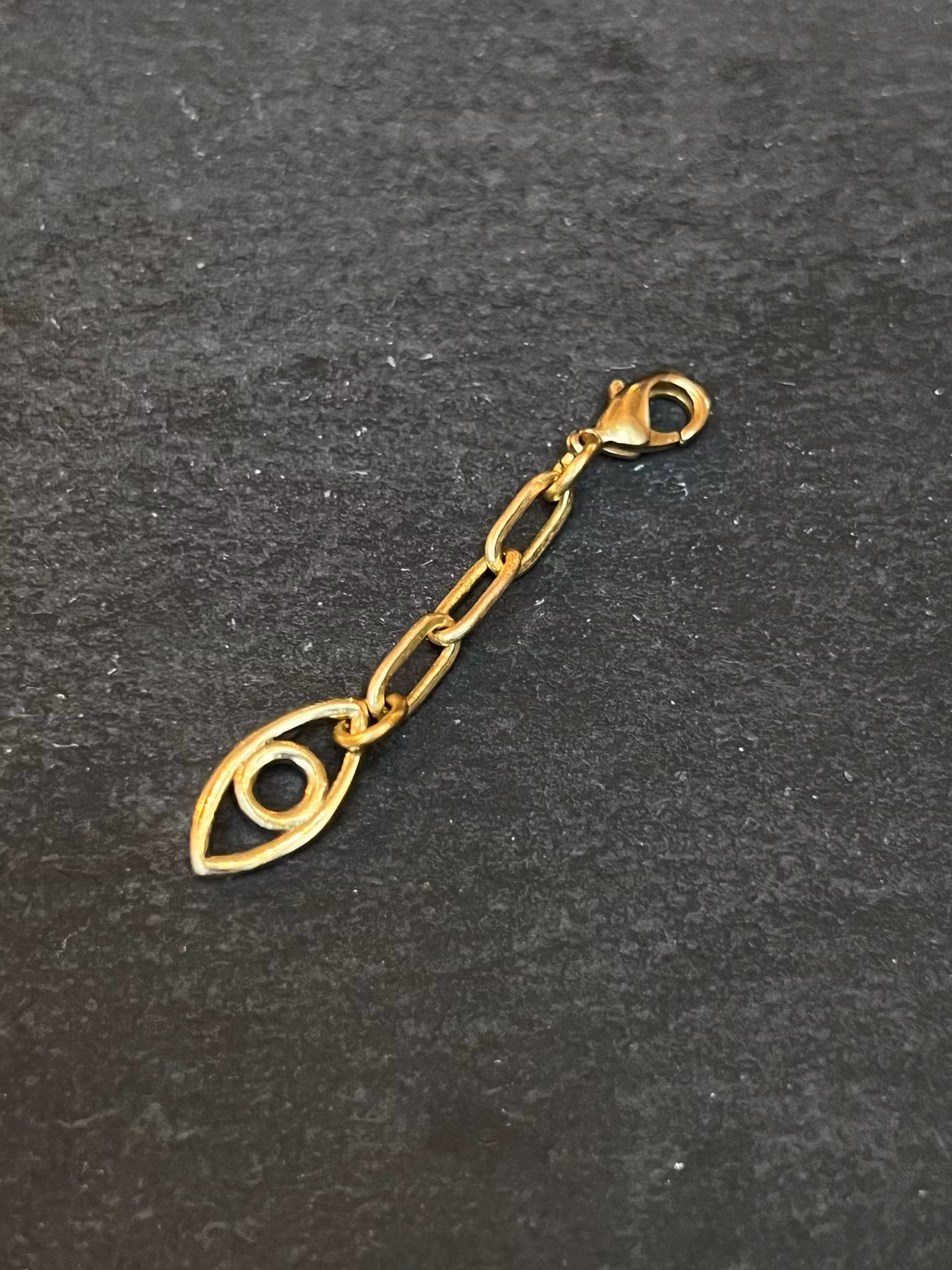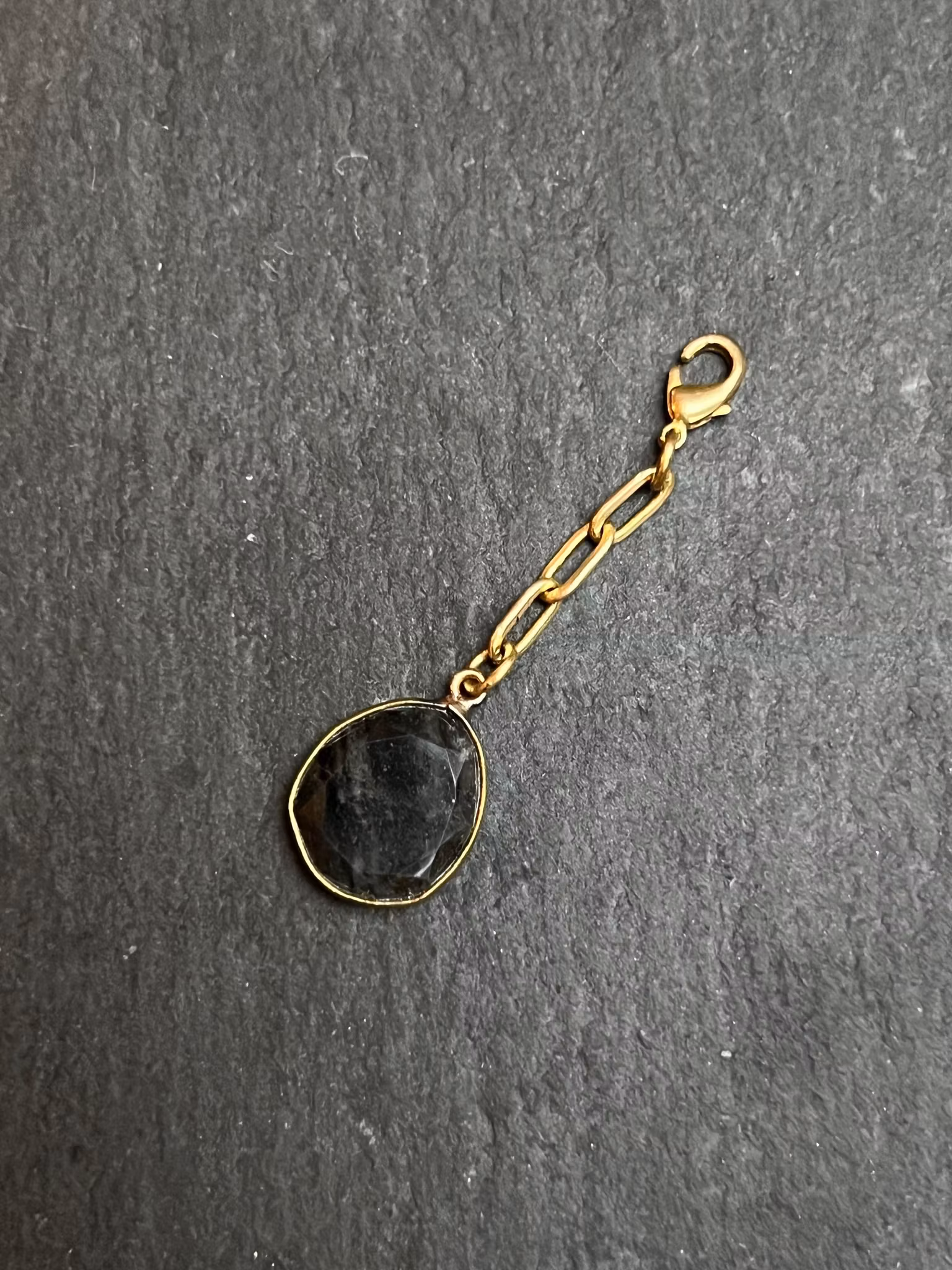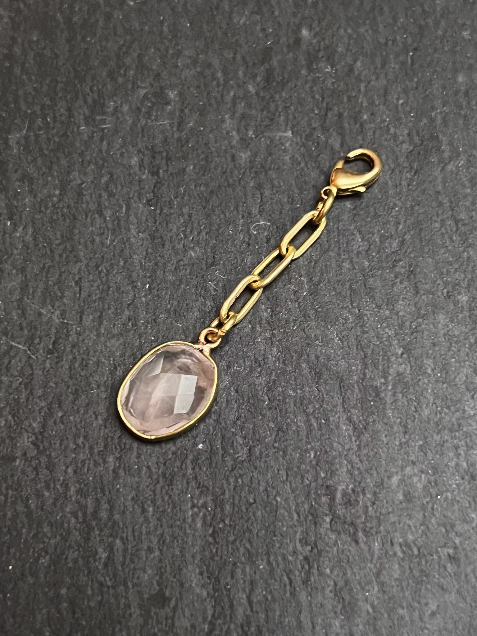 Dessa hängen är till för att fästa i själva kedjan och blir ett fint komplement till de som är fästa i ringen. Denna modell sitter på en kort kedja med ett litet karbinlås så att du själv enkelt kan klicka på och av de från halsbandet. De kan bäras på egen hand eller i din unika kombination. De är väldigt fina att kombinera med de som endast har karbinlås.