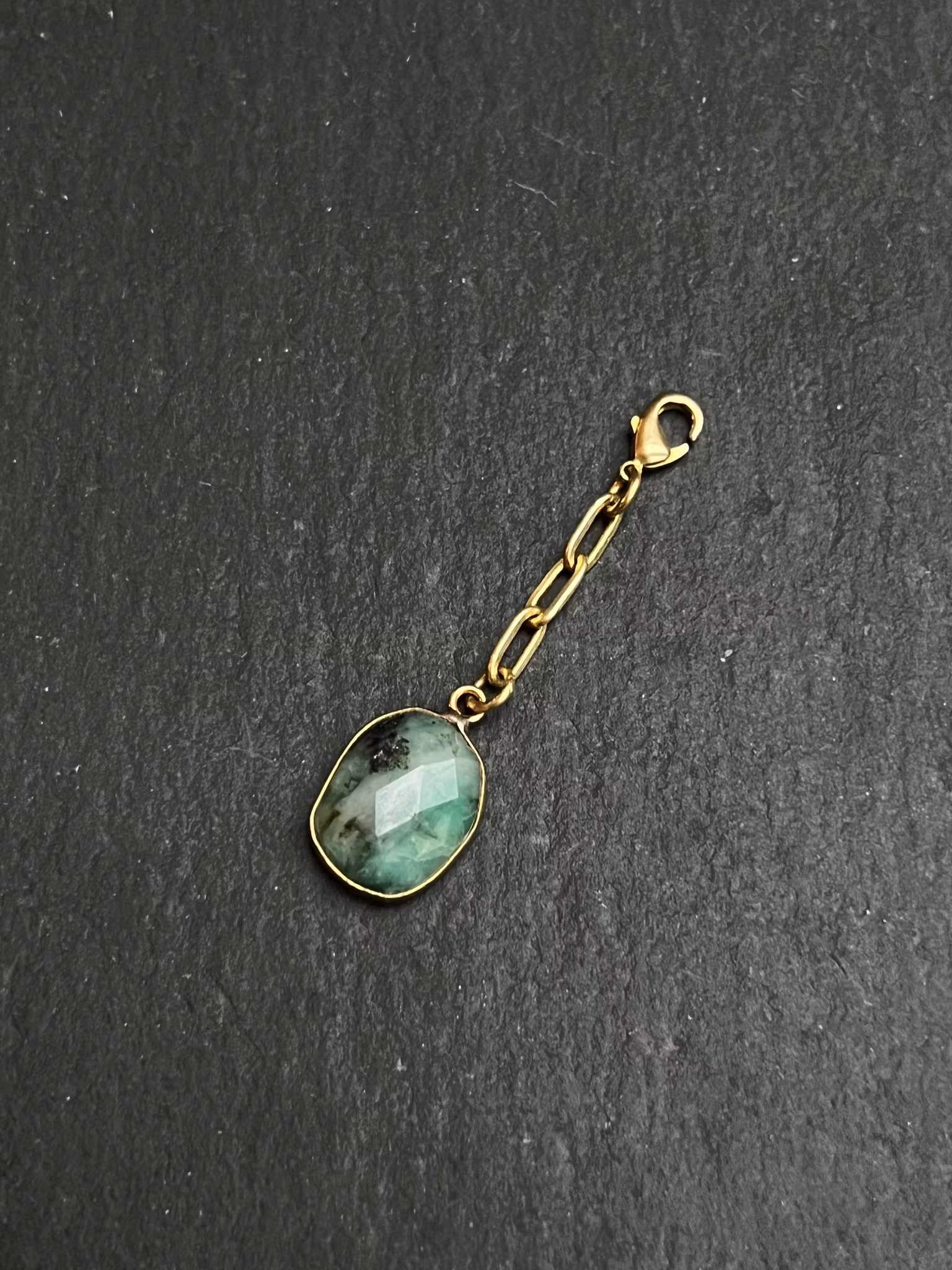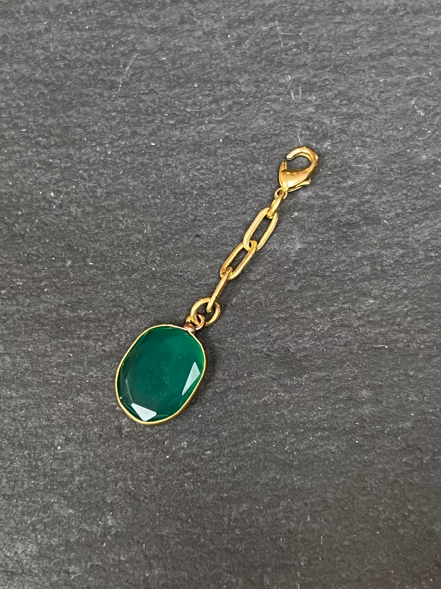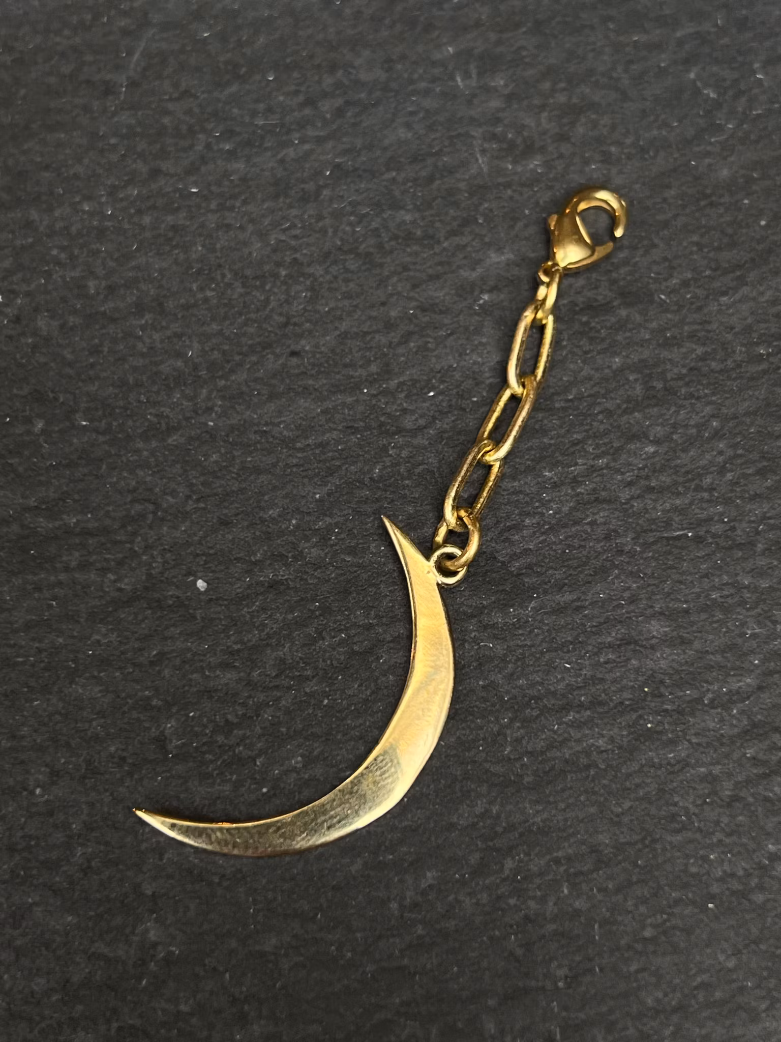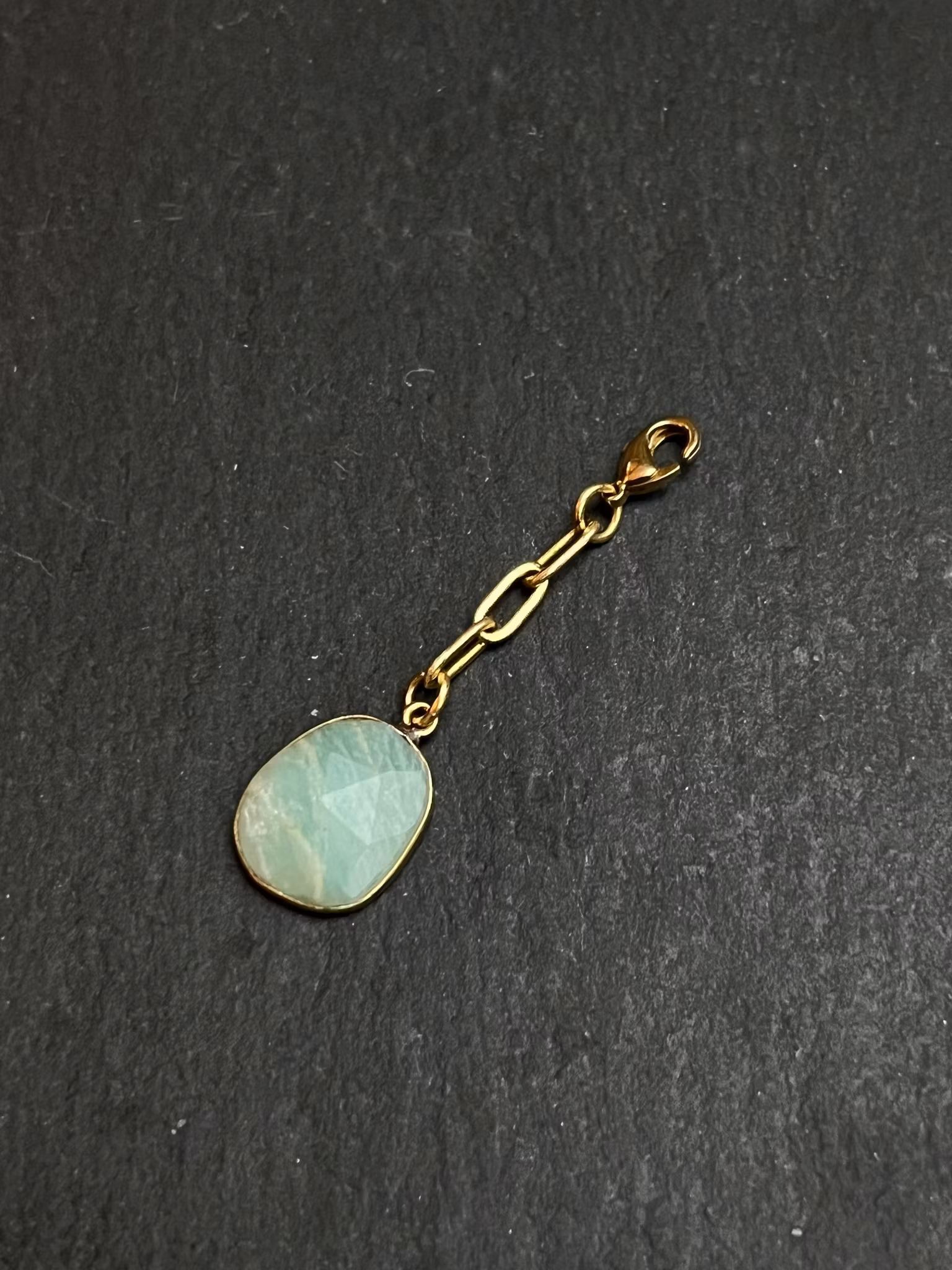 Dessa hängen är till för att fästa i själva kedjan och blir ett fint komplement till de som är fästa i ringen. Denna modell sitter på en kort kedja med ett litet karbinlås så att du själv enkelt kan klicka på och av de från halsbandet. De kan bäras på egen hand eller i din unika kombination. De är väldigt fina att kombinera med de som endast har karbinlås.