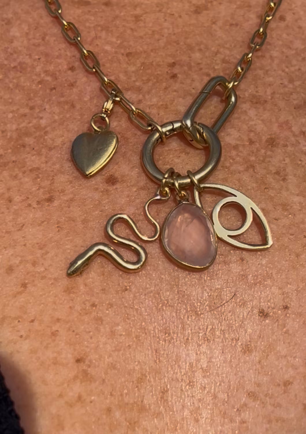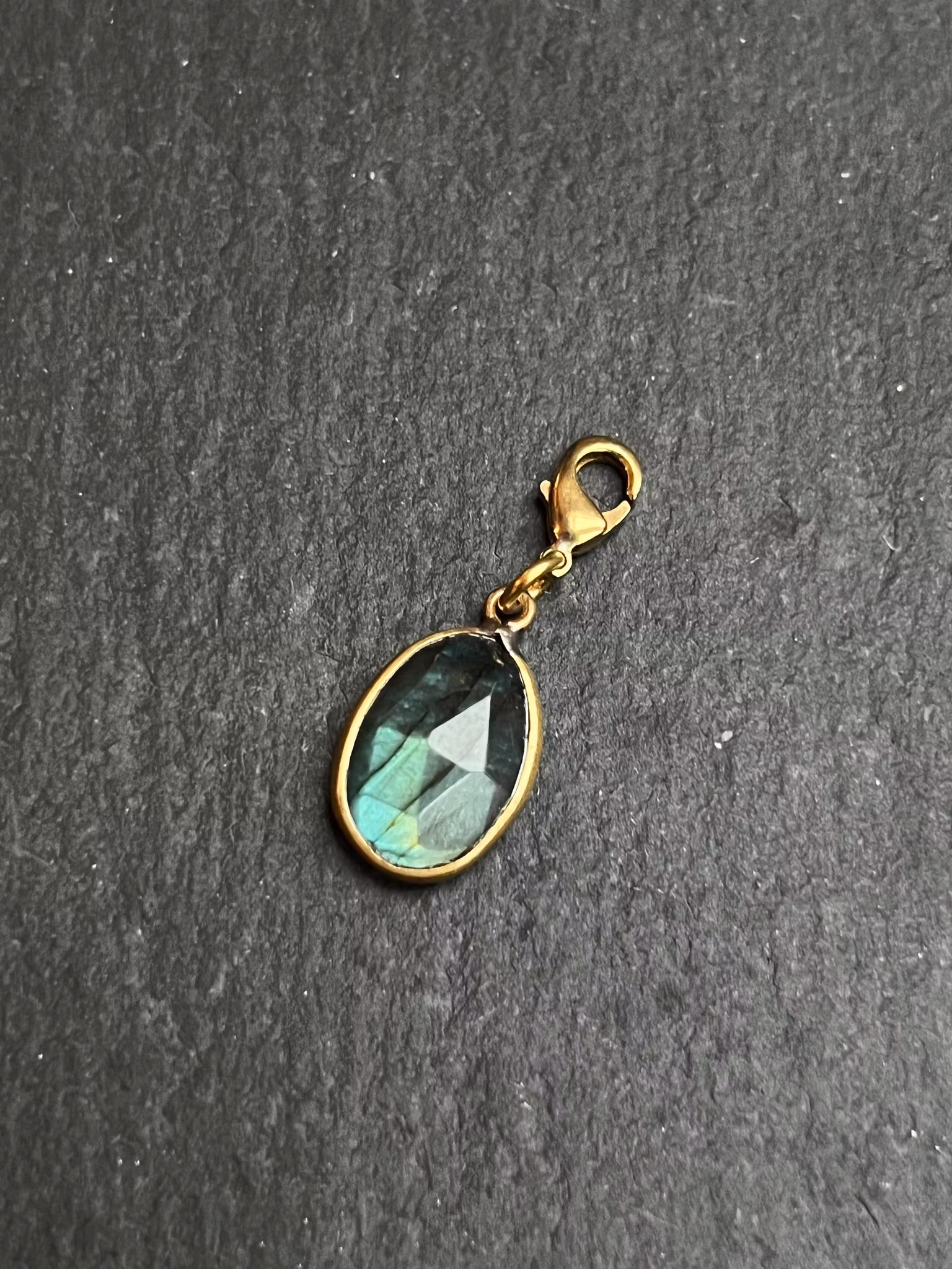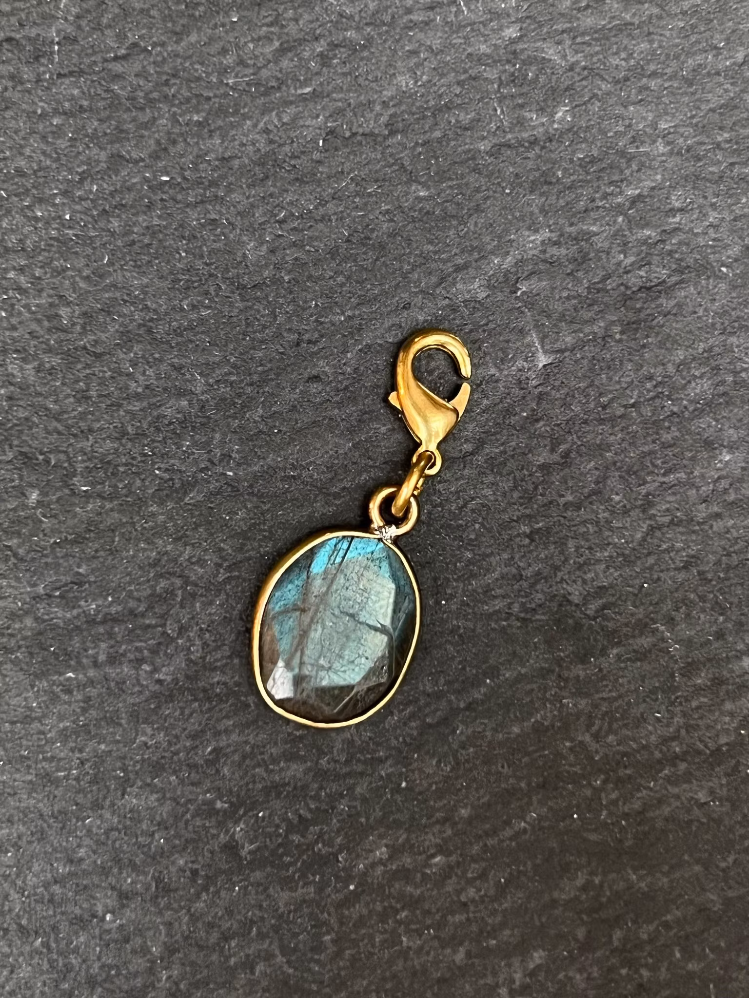 Dessa hängen är tänkta att fästa i själva kedjan och blir ett väldigt fint komplement till de som är fästa i ringen. De kommer med ett litet karbinlås så att du själv enkelt kan klicka på och av de från kedjan. De kan bäras var för sig eller i din unika kombination. De blir även väldigt fina att kombinera med hängena på kedja.