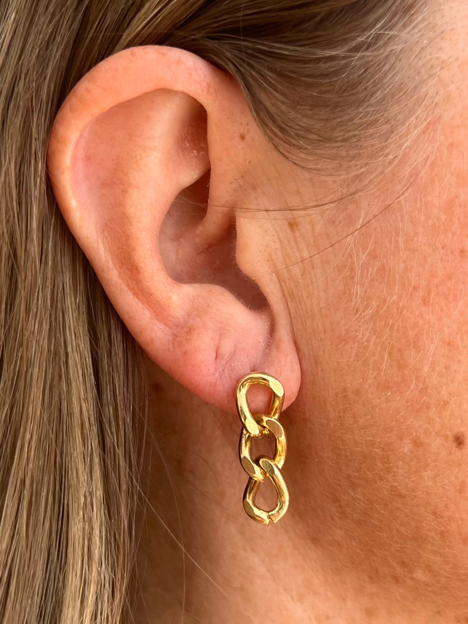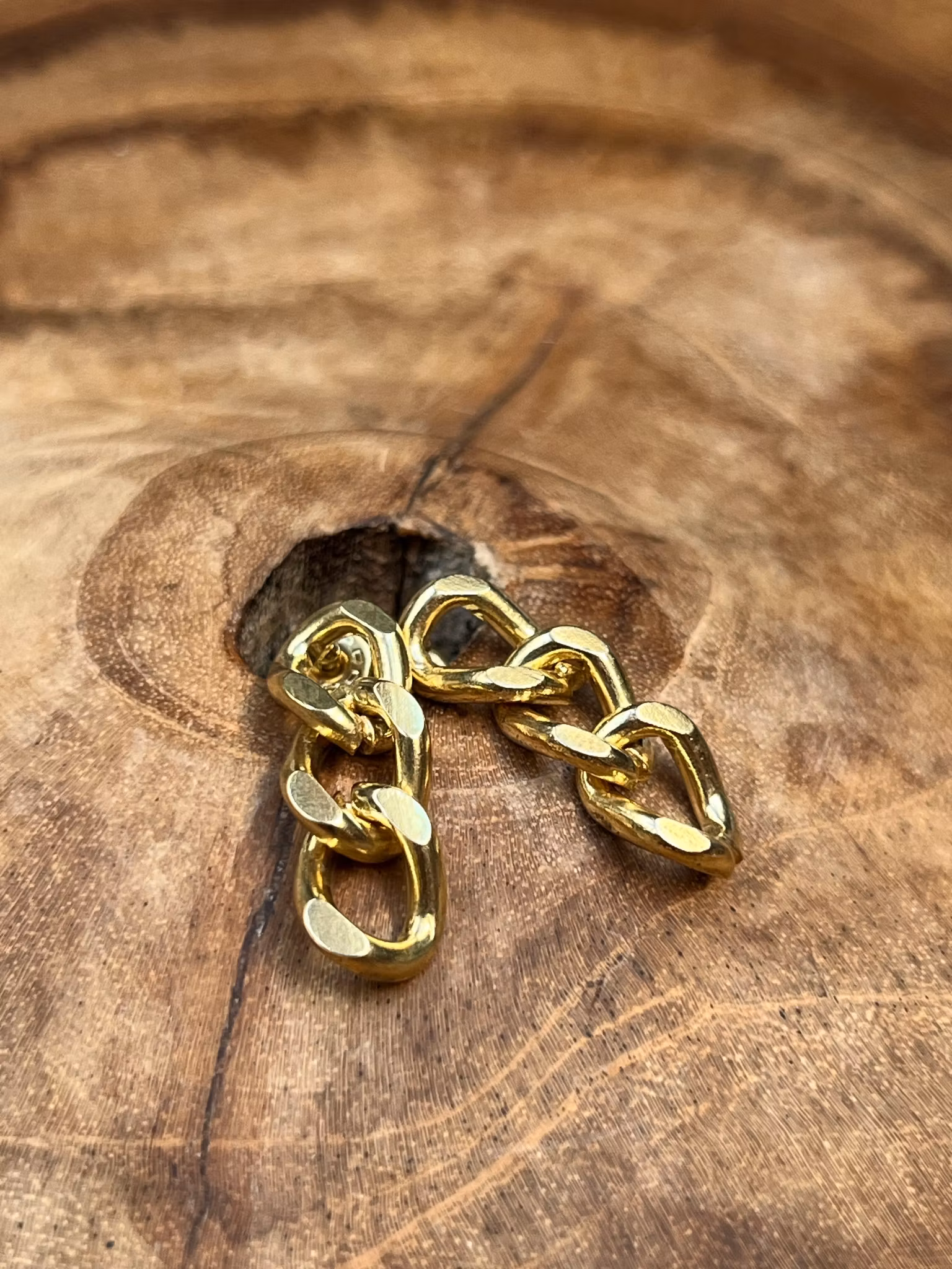 När du bär dessa örhängen, bär du balansen mellan det flexibla och det orubbliga. De bär på en vacker motsägelse, det mjuka och det hårda i ett. De enskilda länkarna formar något följsamt som rör sig med dig, samtidigt som varje del bär en tydlig styrka och struktur.