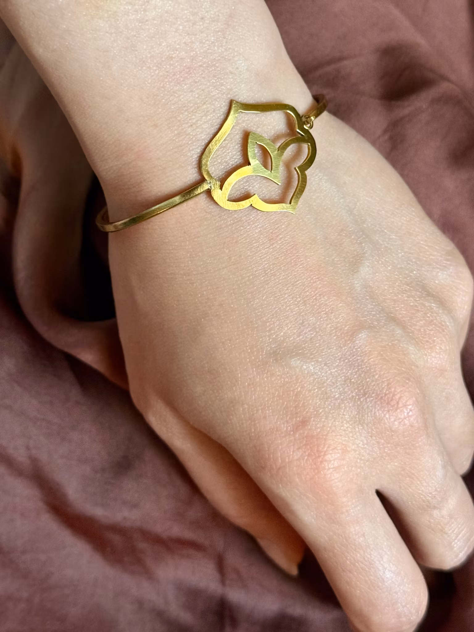 När du bär denna lotus bär du en symbol för renhet, uppvaknande och inre styrka. Lotusen reser sig ur vattnets djup och påminner om skönheten i att växa genom livets prövningar. Ett beömt citat och bok av Thich Nhat Hanh beskriver det på ett vackert vis, "No mud, no lotus". Jämförelsen att liksom lotusen behöver dyigt vatten för att frodas maximalt, blir även vi människor vackrare och klarare när vi tagit oss genom motgångar i livet.