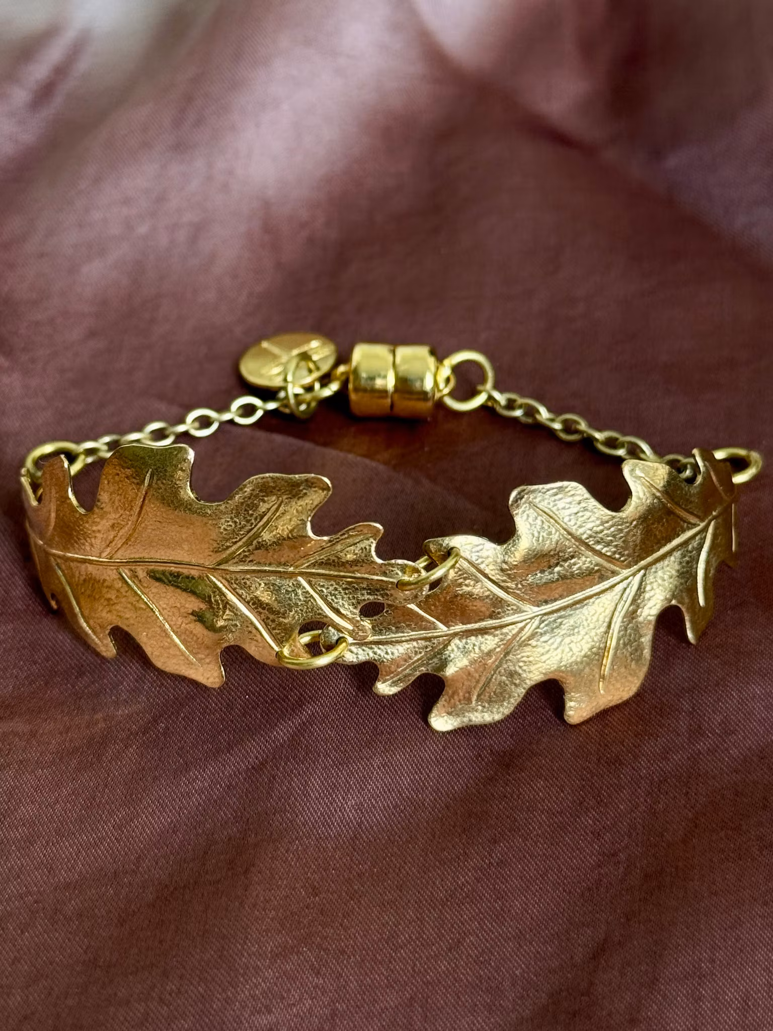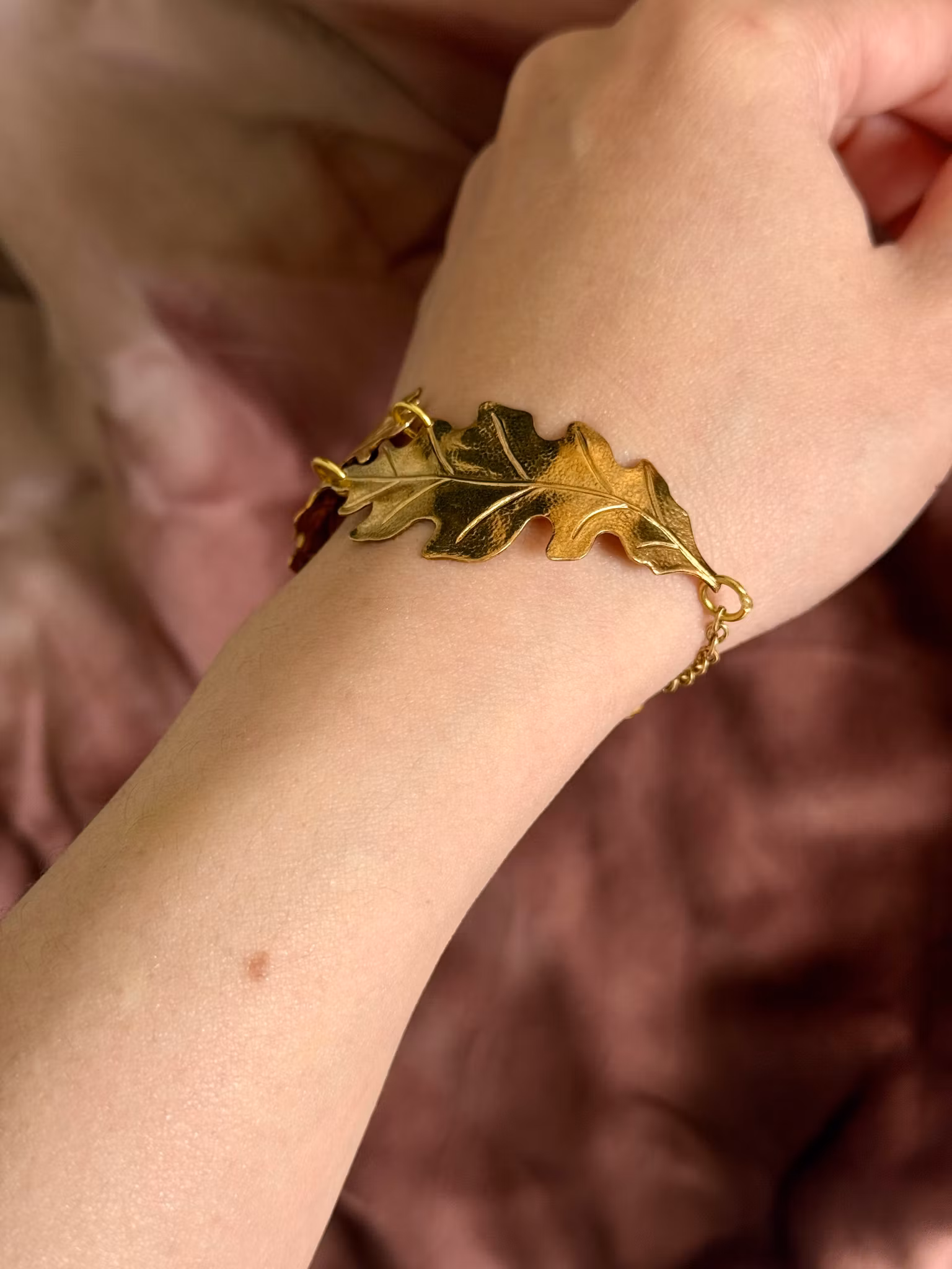 När du bär detta eklövsarmband, bär du en symbol för styrka, stabilitet och visdom. Eken kan bli upp emot 1000 år gammal och självfäller grenar den inte längre har behov av. Detta ger mer utrymme och ljus åt andra arter och förklarar varför just eken ofta har upp emot 1500 andra arter omkring sig i samexistens. I många traditioner har eken setts som ett heligt träd för sin uthållighet och djupa rötter.