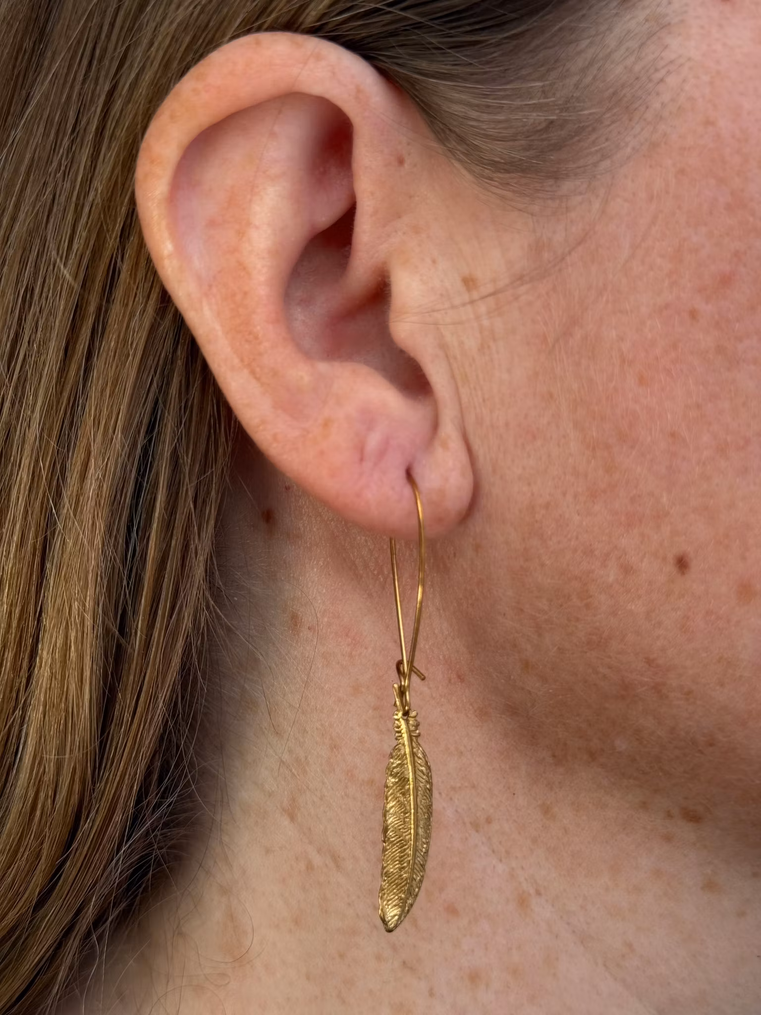 Örhängena säljs i par. Örkroken är av förgylld mässing och hänget är mässing.
